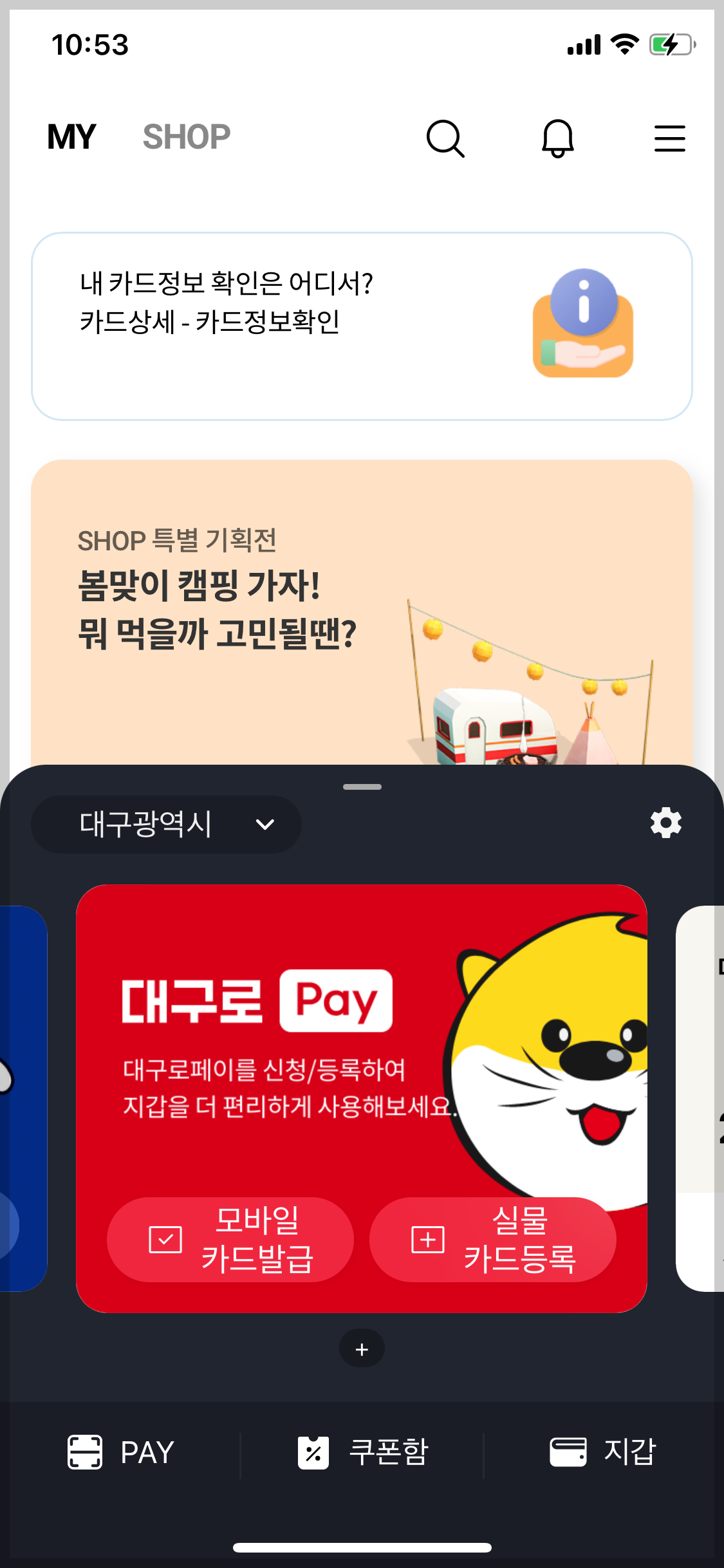 iM#앱 설치 후 홈화면 에서 대구로페이 모바일카드 신청