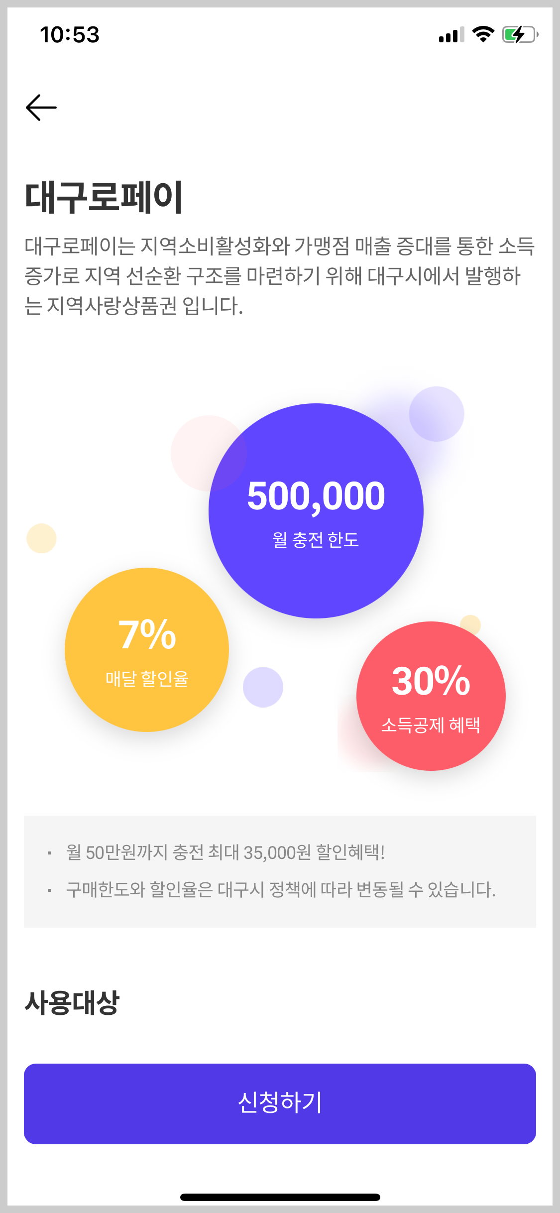 *충전한도 및 할인율은 대구시 정책에 따라 변경 될 수 있습니다.