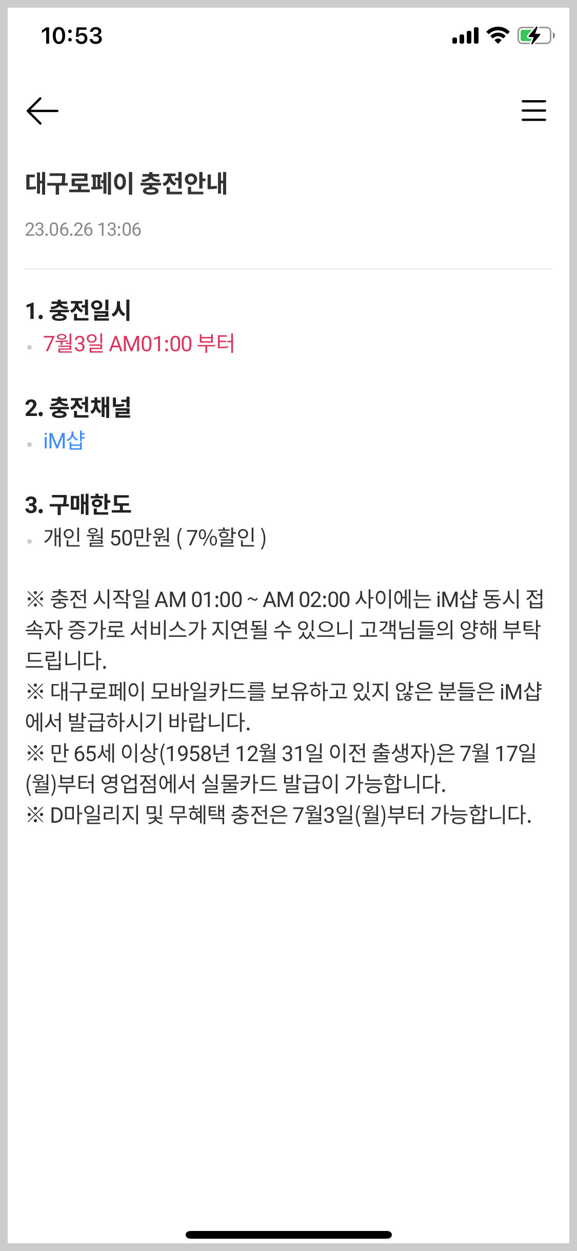 충전은 iM#앱에서,