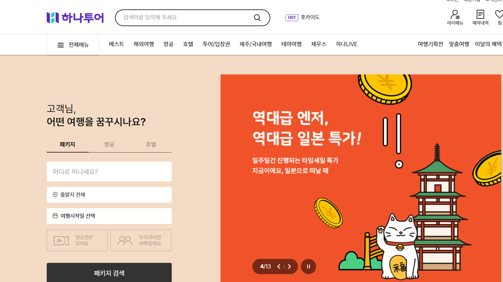 하나투어는 여행자의 니즈, 트렌드를 반영하여 짧은 여행/긴 여행을 테마로 나뉘어