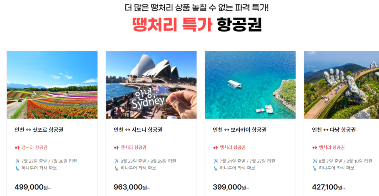 하나투어 땡처리 항공권 (사진 클릭 시 홈페이지 이동)