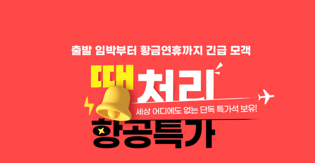 땡처리 항공은 미리 확보받은 좌석을 판매하기에 한정된 좌석 운영으로 빠르게 마감이 될 수 있습니다.