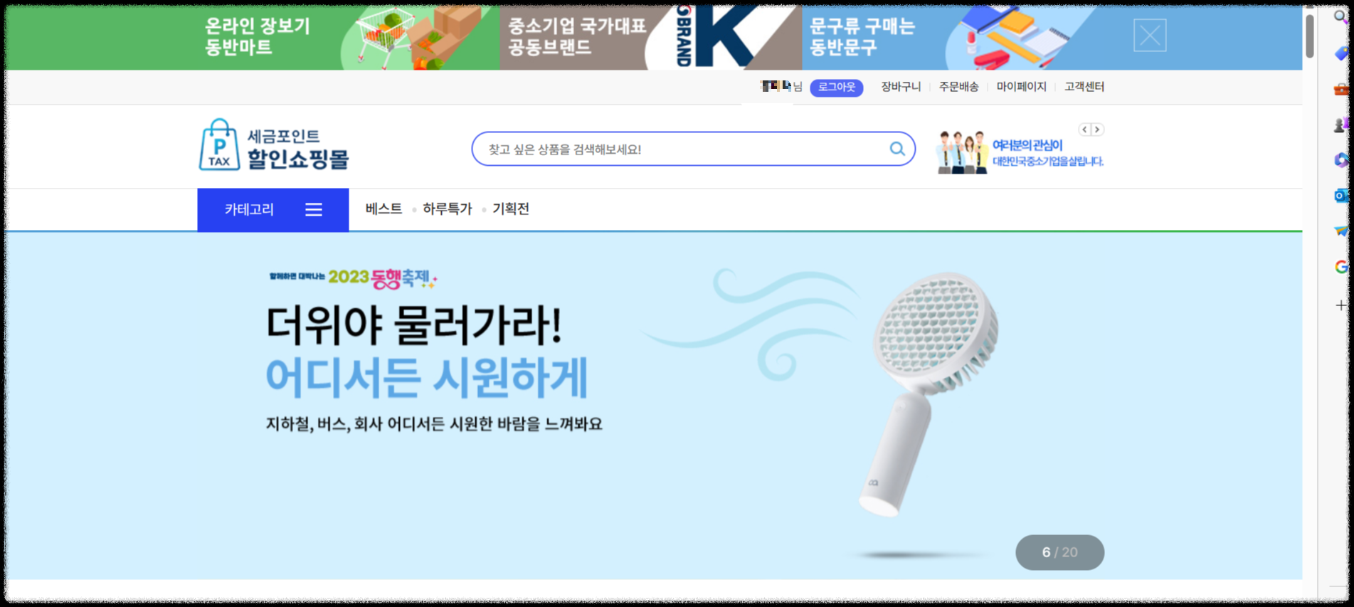 세금포인트로 할인을 받을 수 있는 쇼핑몰로 바로 가는 창입니다.