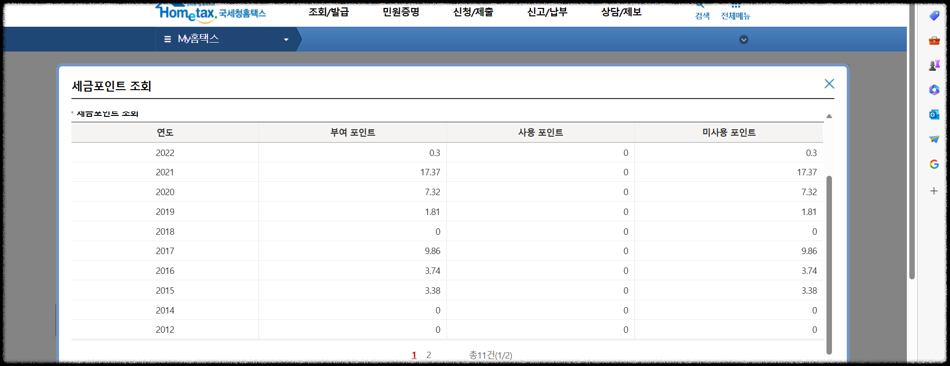 세금포인트 조회하기
